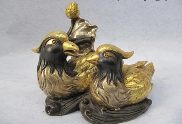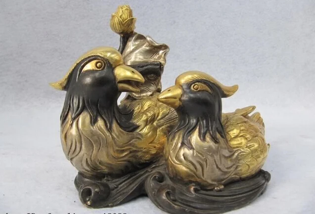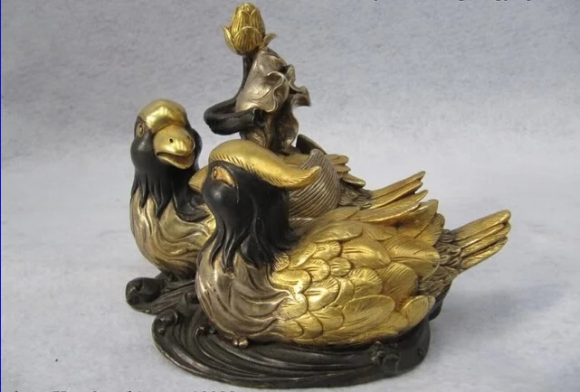 REVIEW TOP SELLER Elegant old S0491 Exquisite Pure Bronze 24K Gold Gild lotus flower mandarin duck Bird Play water (A