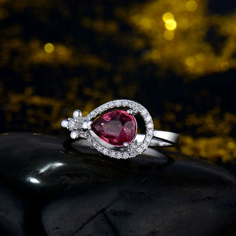 New Style Natural Touemaline Engagement Ring White Gold 18K Fine Jewelry Pear 6x8mm Gemstone WU230