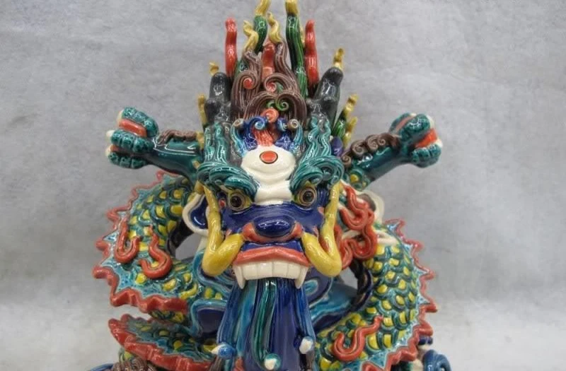 BEST SELLER Taiwan Koji Cochin pottery WuCai Colorful porcelain spit Water Dragon Art Statue