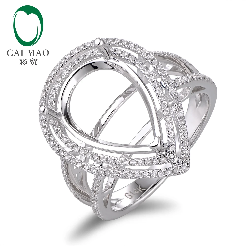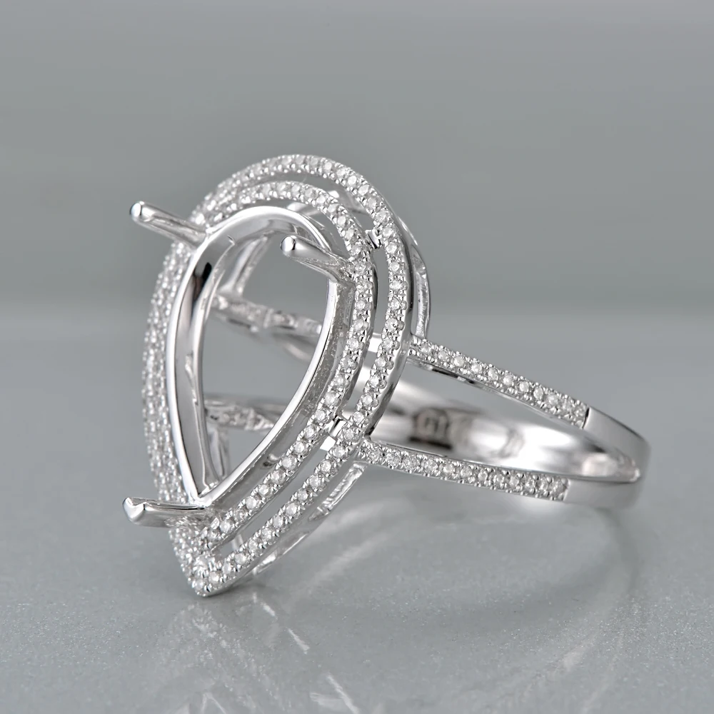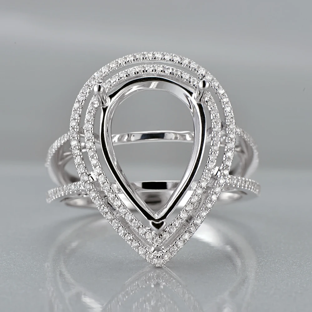 11x15mm Pear shape 18K white gold Natural 0.50ct Diamond Engagement Ring Jewelry Semi Mount Setting