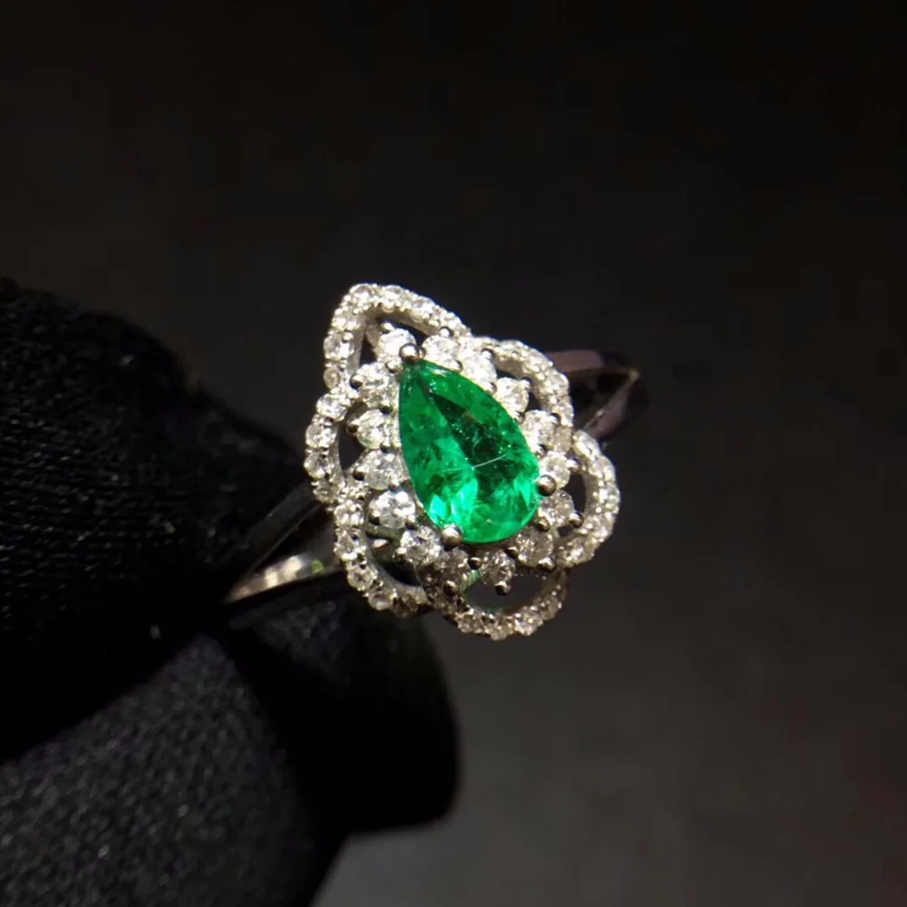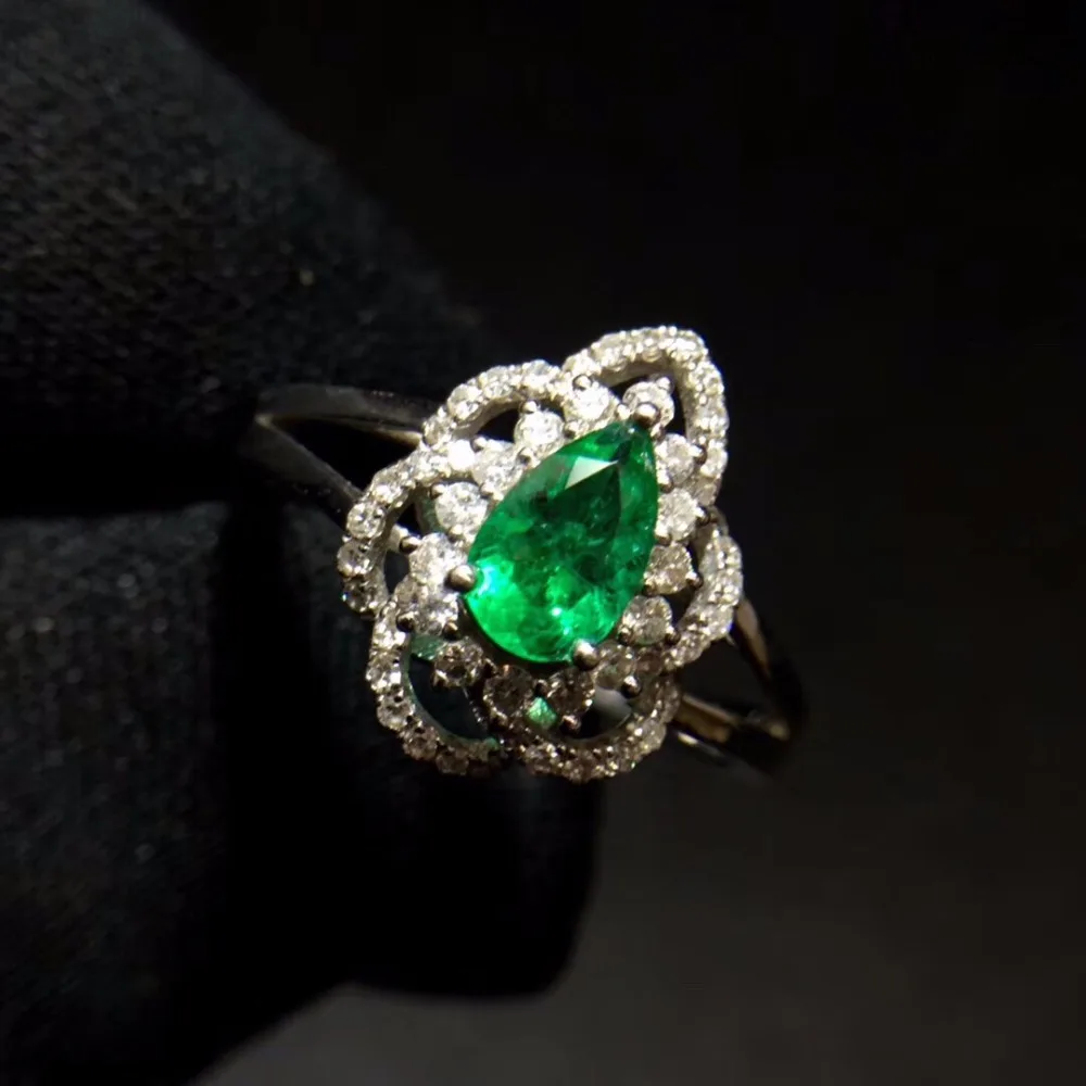 Review Fine Jewelry Real Pure 18 K White Gold 100% Natural Emerald 0.6ct Gemstone Diamonds Jewellery Femal