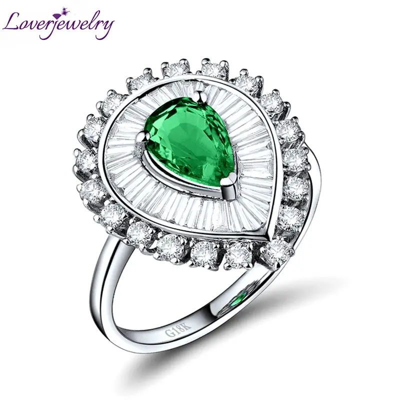 Women Emerald Rings Pear 5x7mm 18k White Gold Natural Diamond Emerald Gemstone Engagement Party Hea